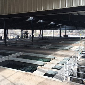 The property has a visitor center with restrooms, and separate areas of canopy-covered rearing units. The hatchery is staffed by nine full-time employees, all of whom are responsible for day-to-day operation and maintenance of the sites.