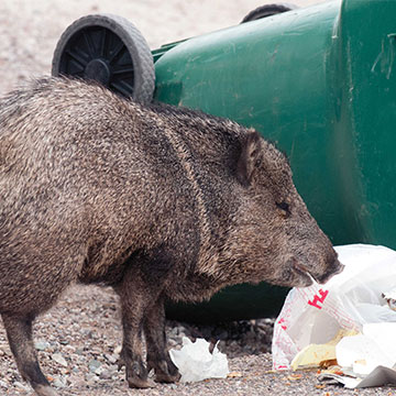 Store all garbage securely. Do not discard edible garbage where javelina, bears, coyotes and other wildlife can get to it. Garbage cans should be put out on the morning of collection and secured as soon as possible to avoid animal scavenging.